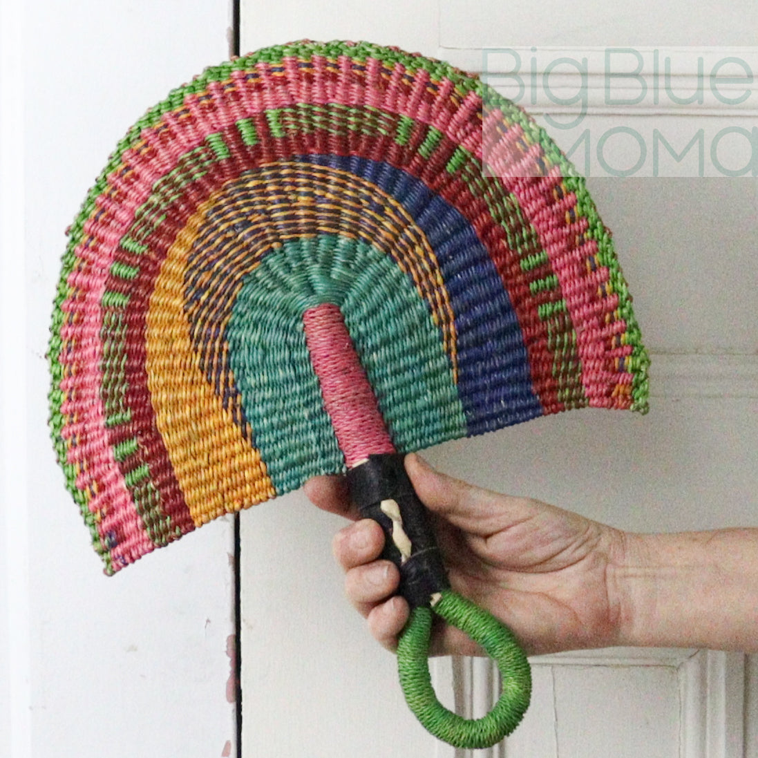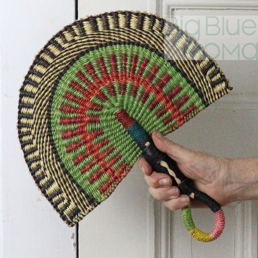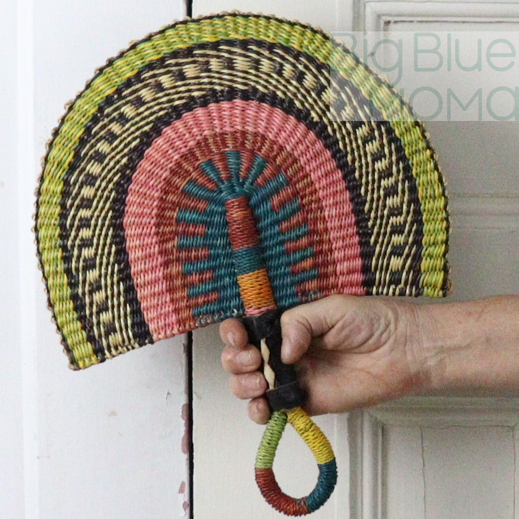 Each fan is one of a kind, showcasing the craftsmanship and colour mastery of Ghanaian weavers. Lightweight, durable, and endlessly eye-catching.