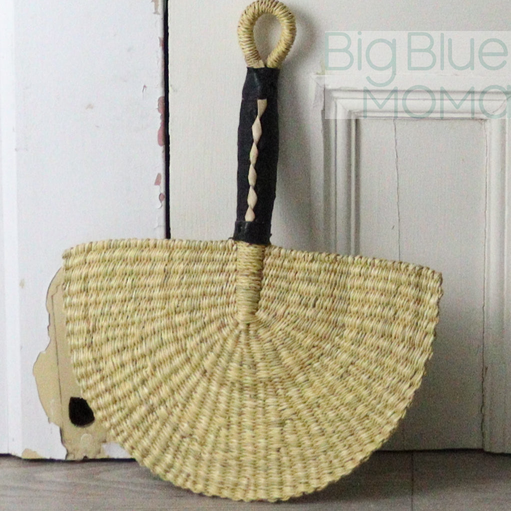 Both functional and decorative, these vibrant handwoven fans are made using sturdy elephant grass and finished with a wrapped leather handle. Use them to keep cool on hot days or display them as bold, sculptural wall art.