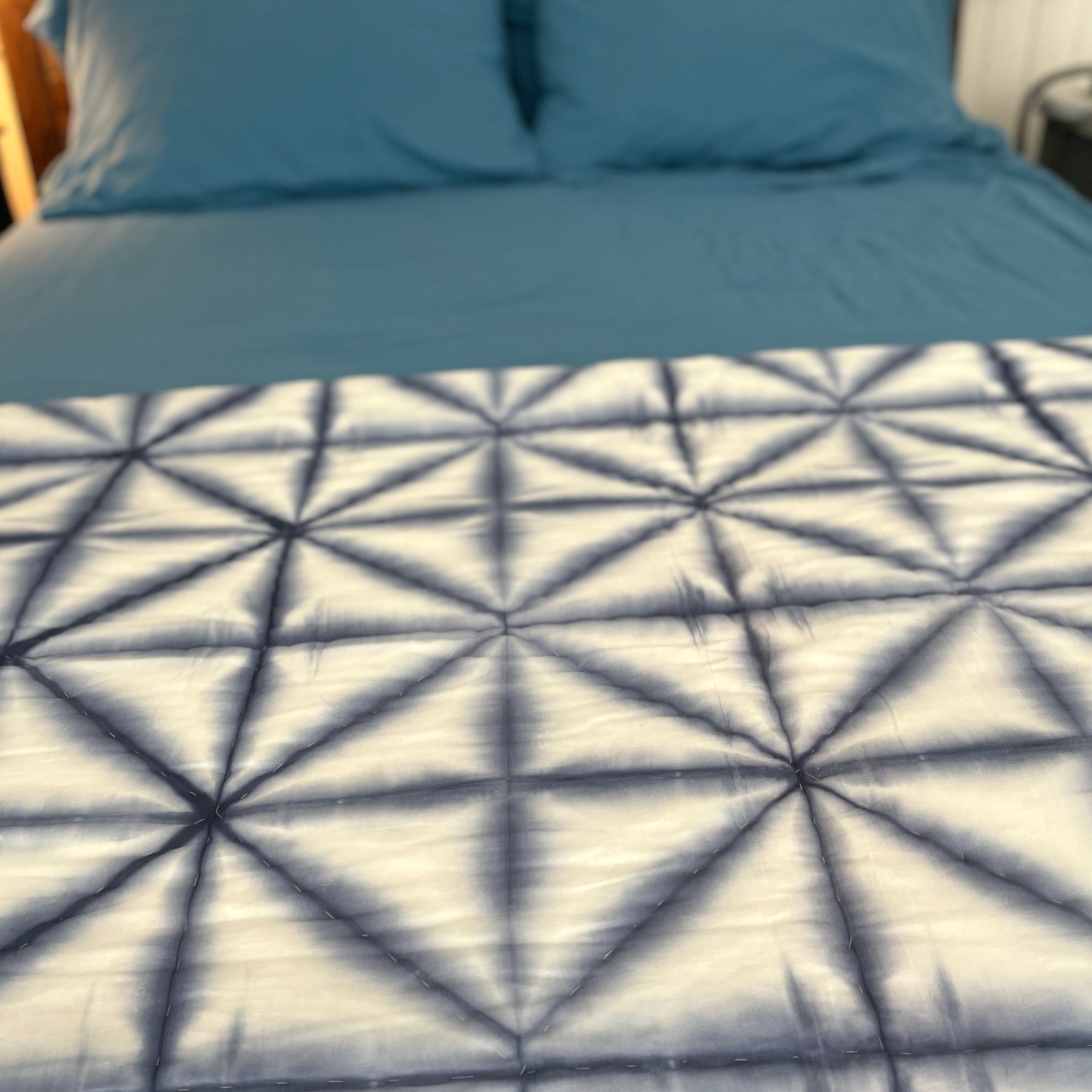 The dyed cotton is then stitched into multiple layers, creating a quilt that is lightweight yet incredibly sturdy. It drapes elegantly, breathes beautifully, and is built to last for decades.