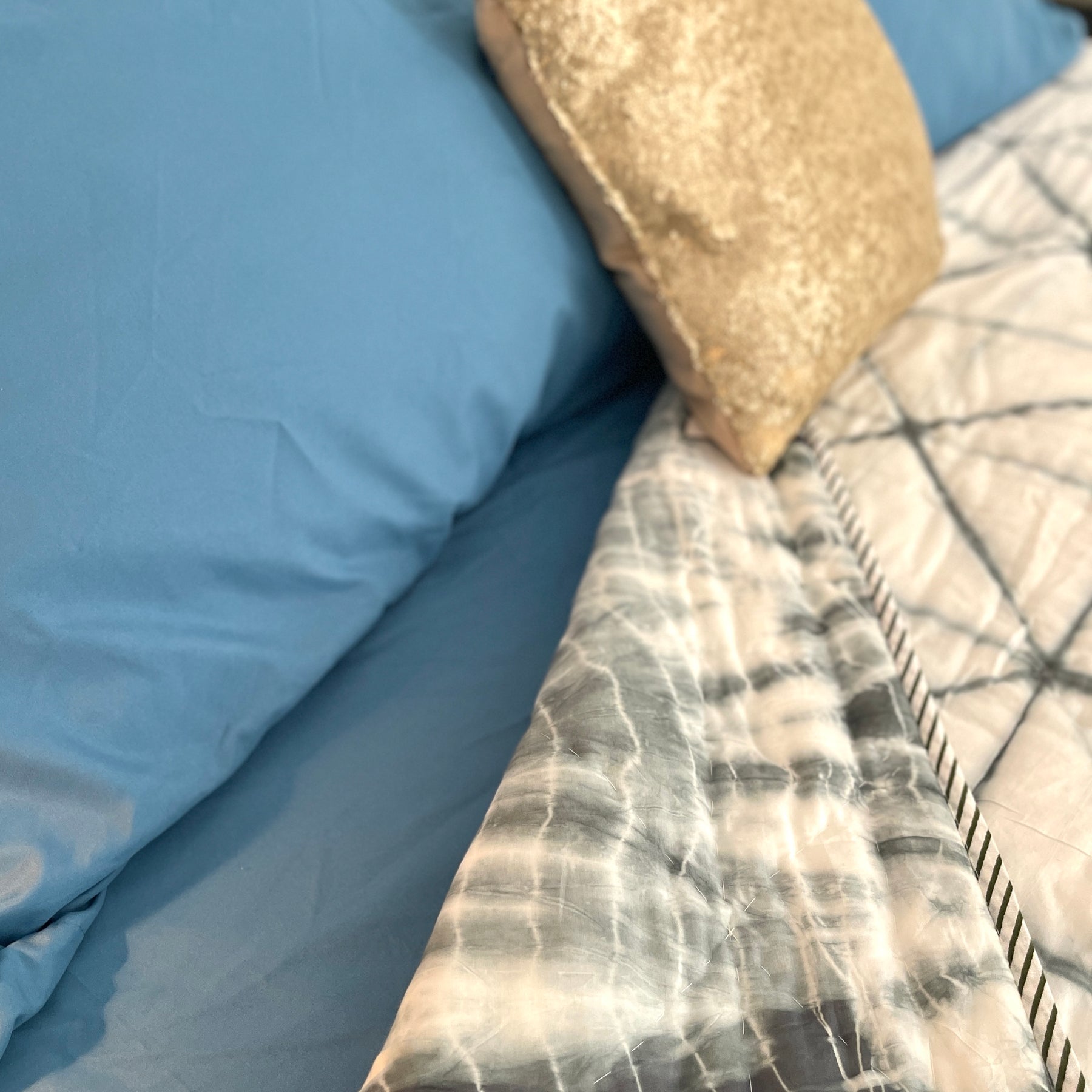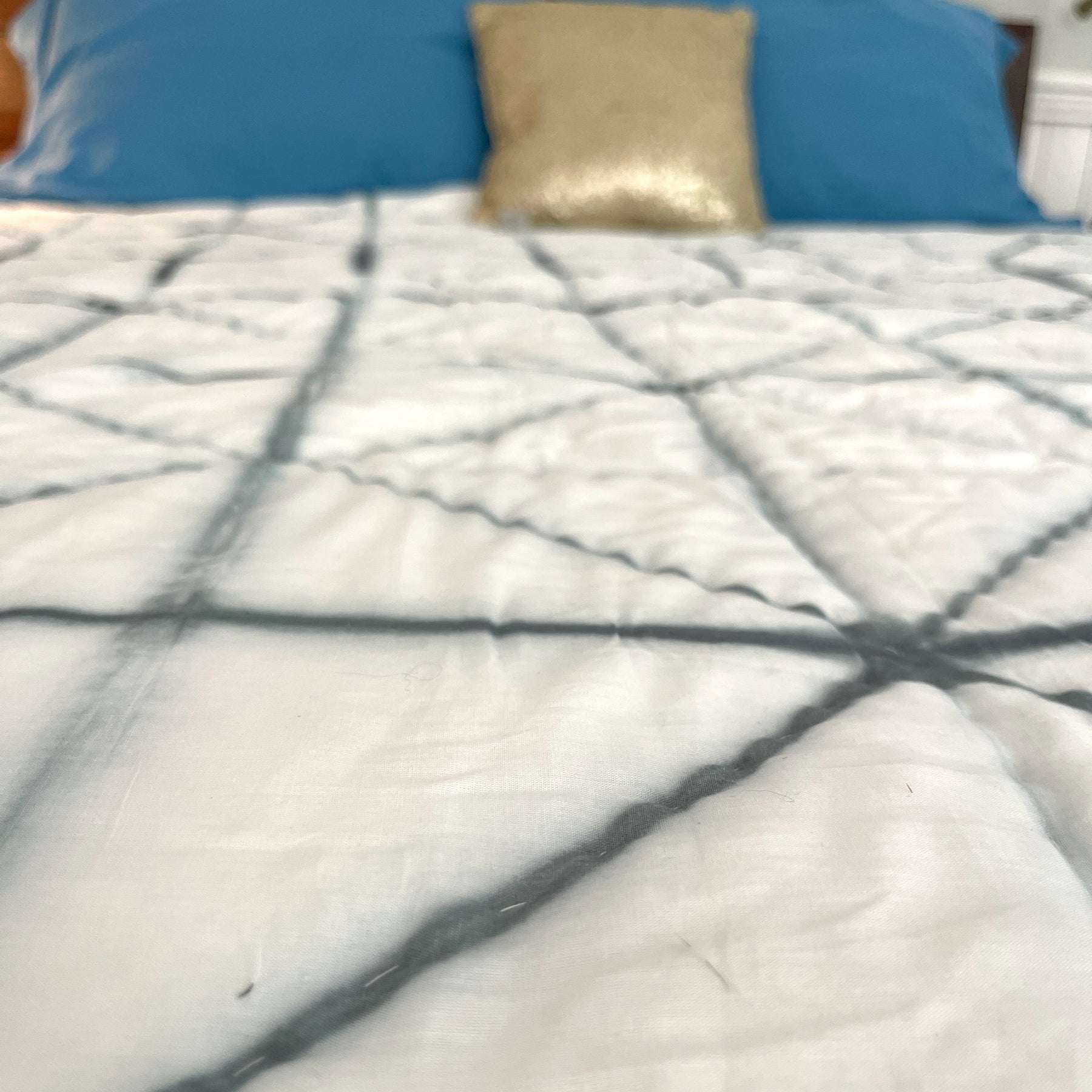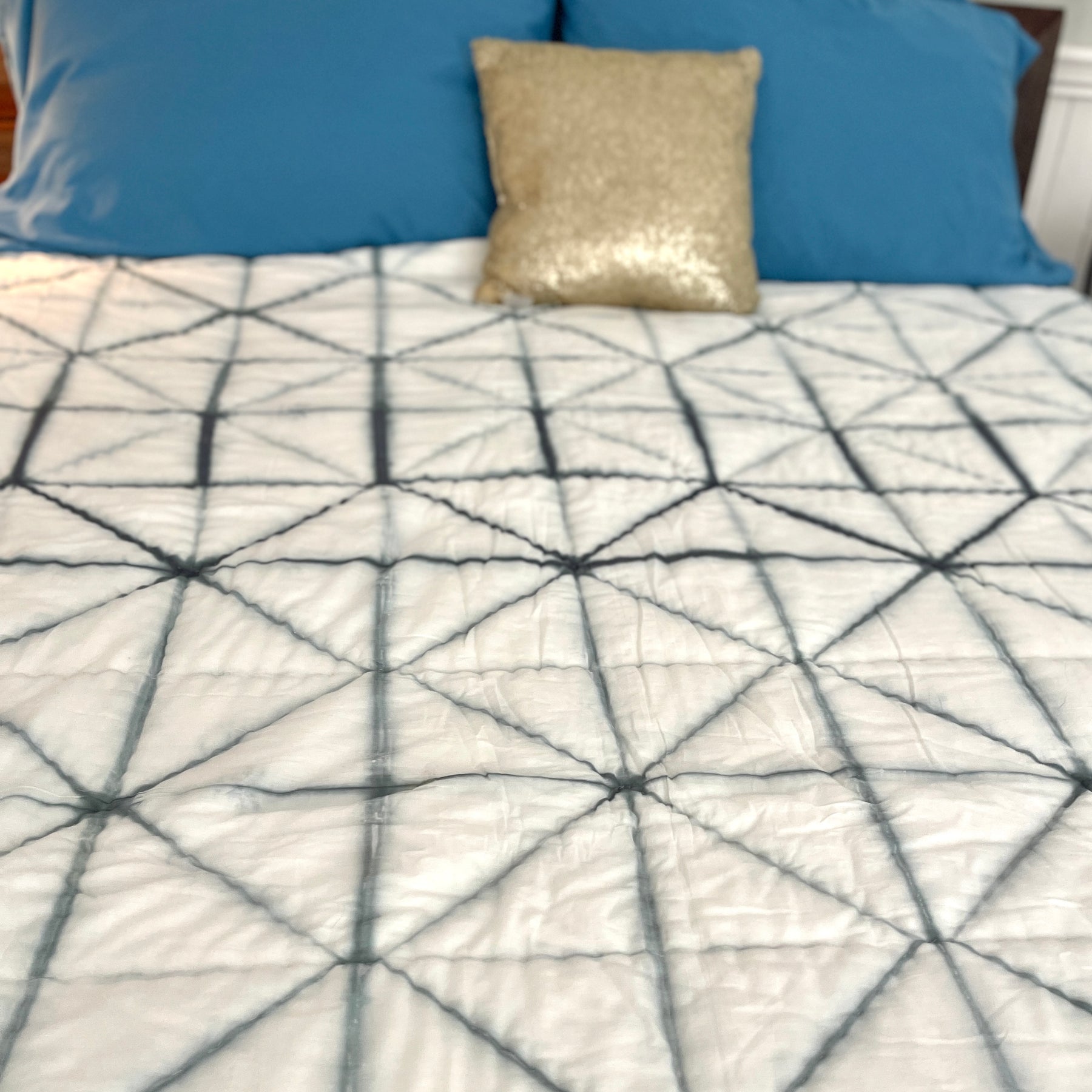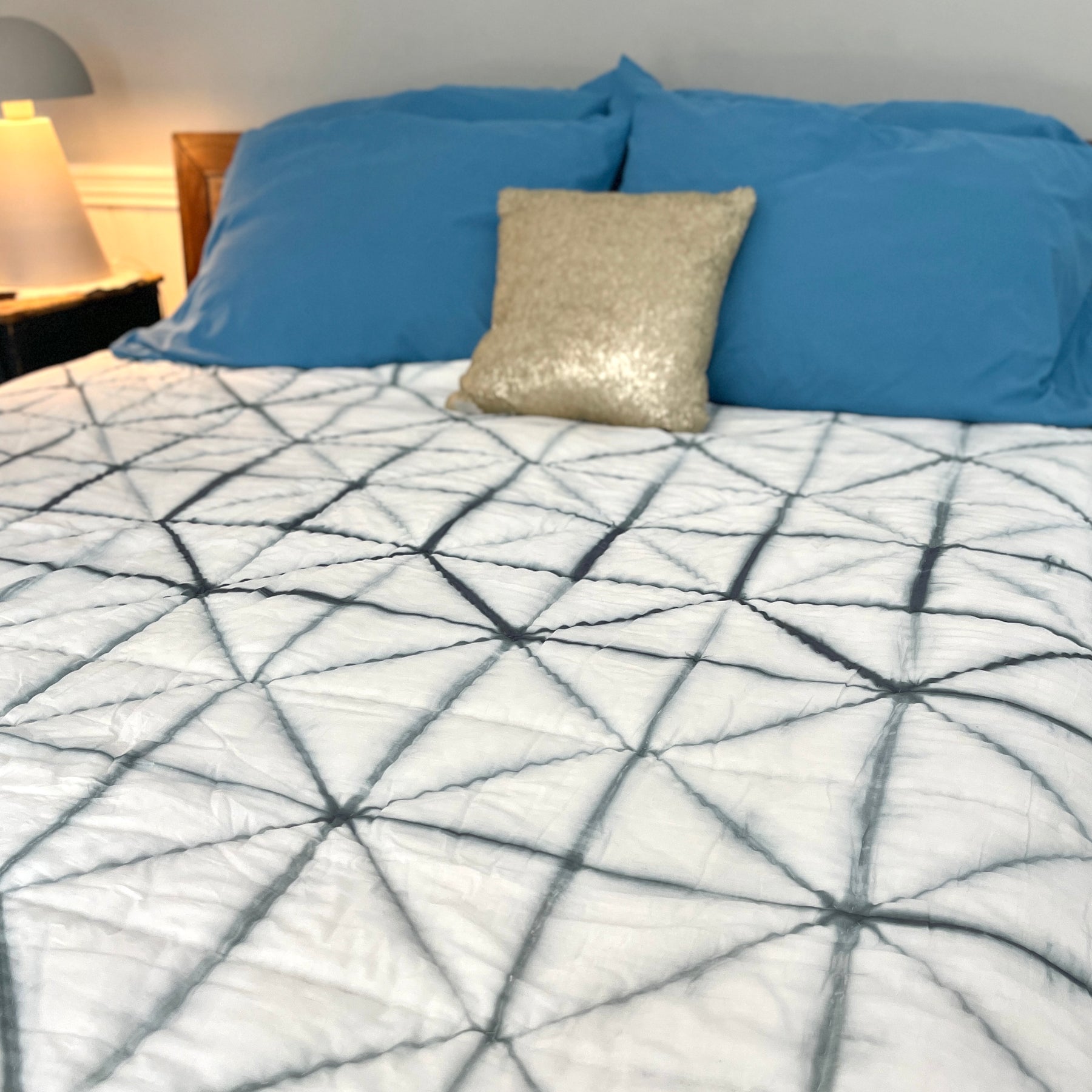 The dyed cotton is then stitched into multiple layers, creating a quilt that is lightweight yet incredibly sturdy. It drapes elegantly, breathes beautifully, and is built to last for decades.