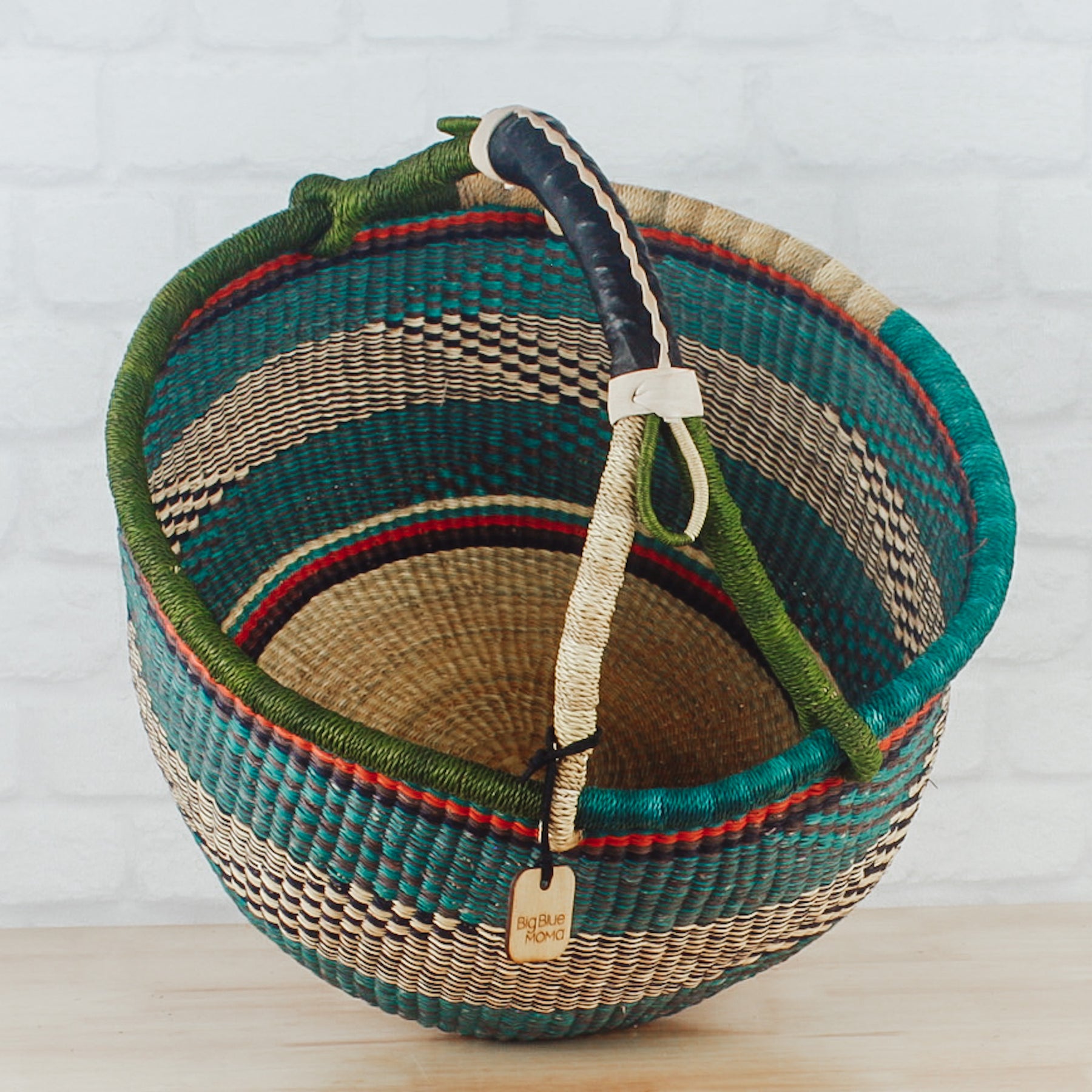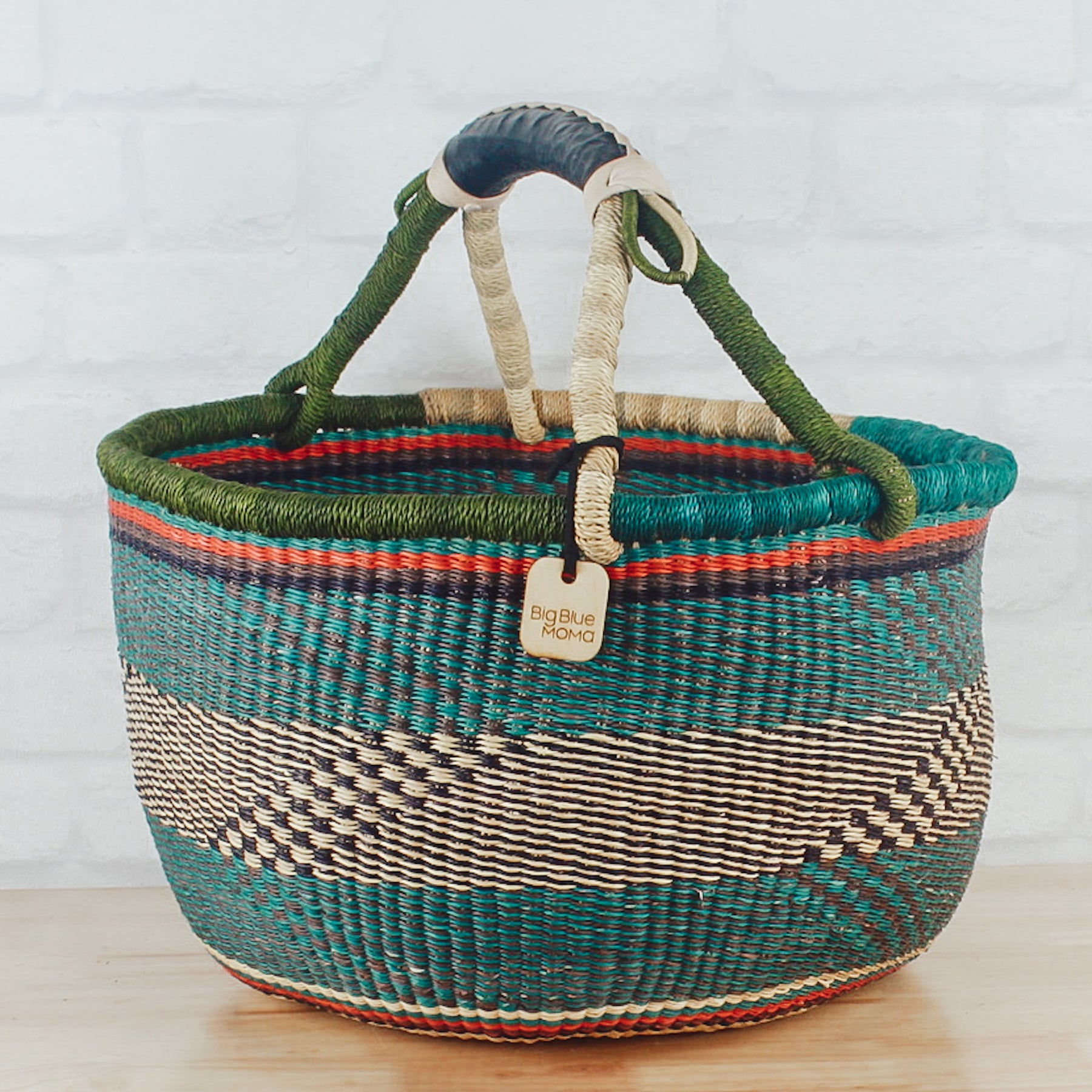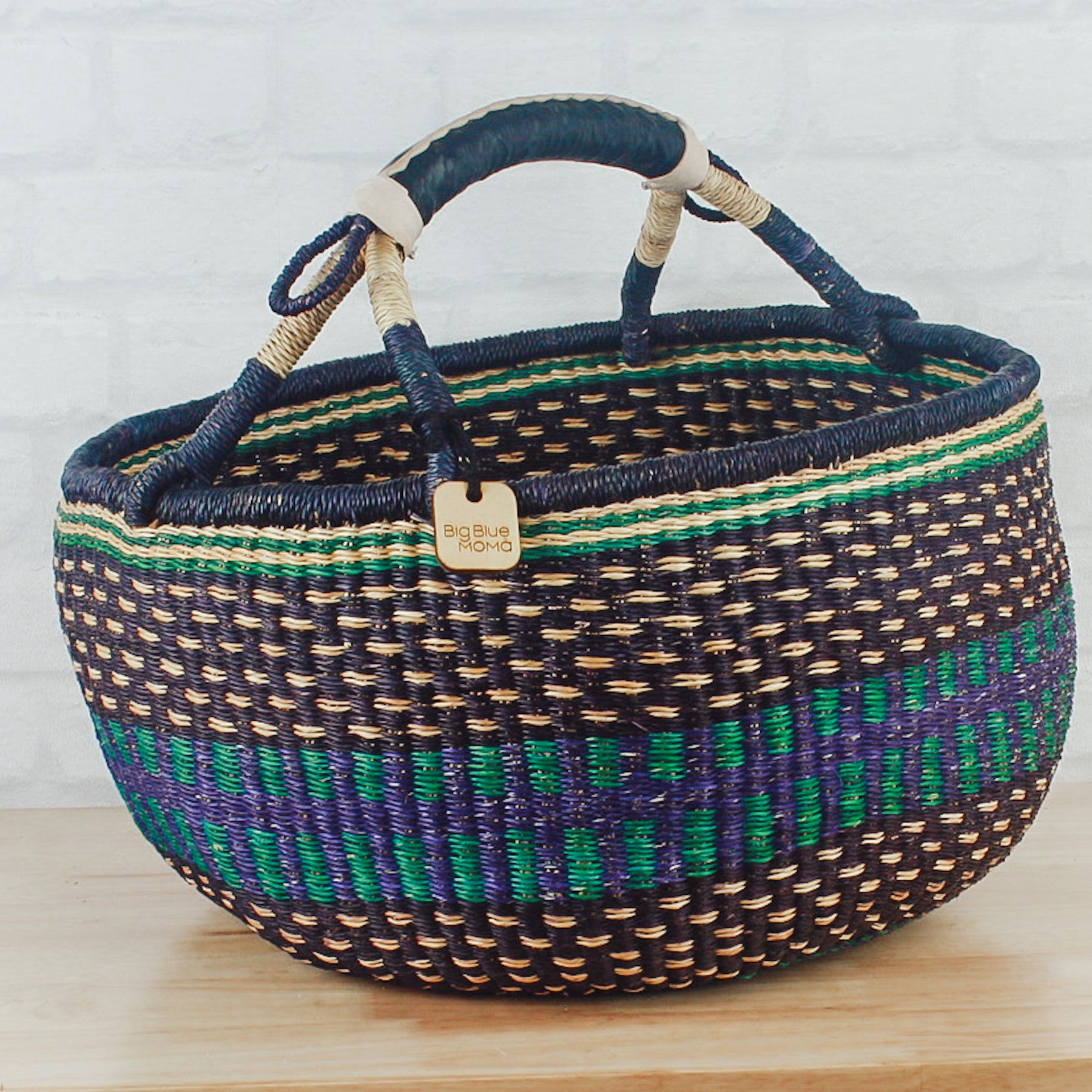 Please note that most Big Blue Moma Baskets ship flat and may require reshaping upon arrival. The reshaping process is simple – just dip them in water and shape them with your hands. Explore our straightforward "how-to" video for a quick demonstration. Join us in promoting sustainable, handmade artistry that transcends borders and tells a captivating story.