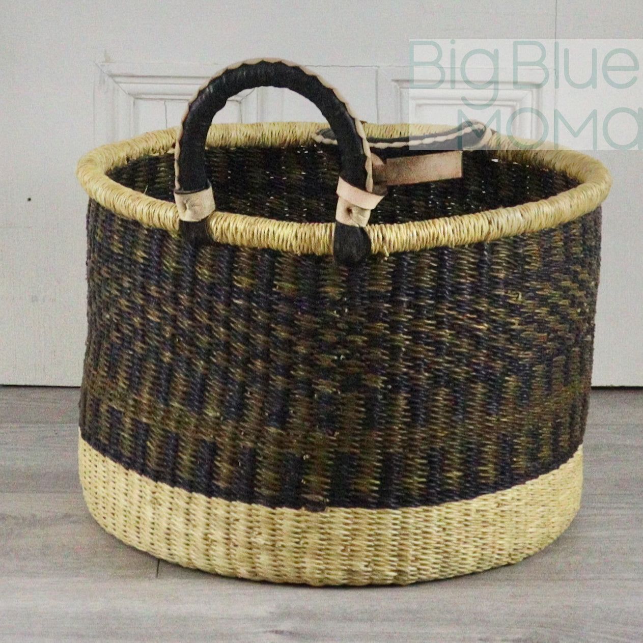 These handmade, hampers are practical for just about anything from laundry to dog toys to firewood. Sturdy construction and two handled design make it easy to carry large and heavy loads. All baskets are woven by hand with elephant grass indigenous to the Bolgatanga area of Ghana, West Africa. Handles are covered with goat leather reinforcing it's construction while also adding an extra level of comfort when carrying a full load.