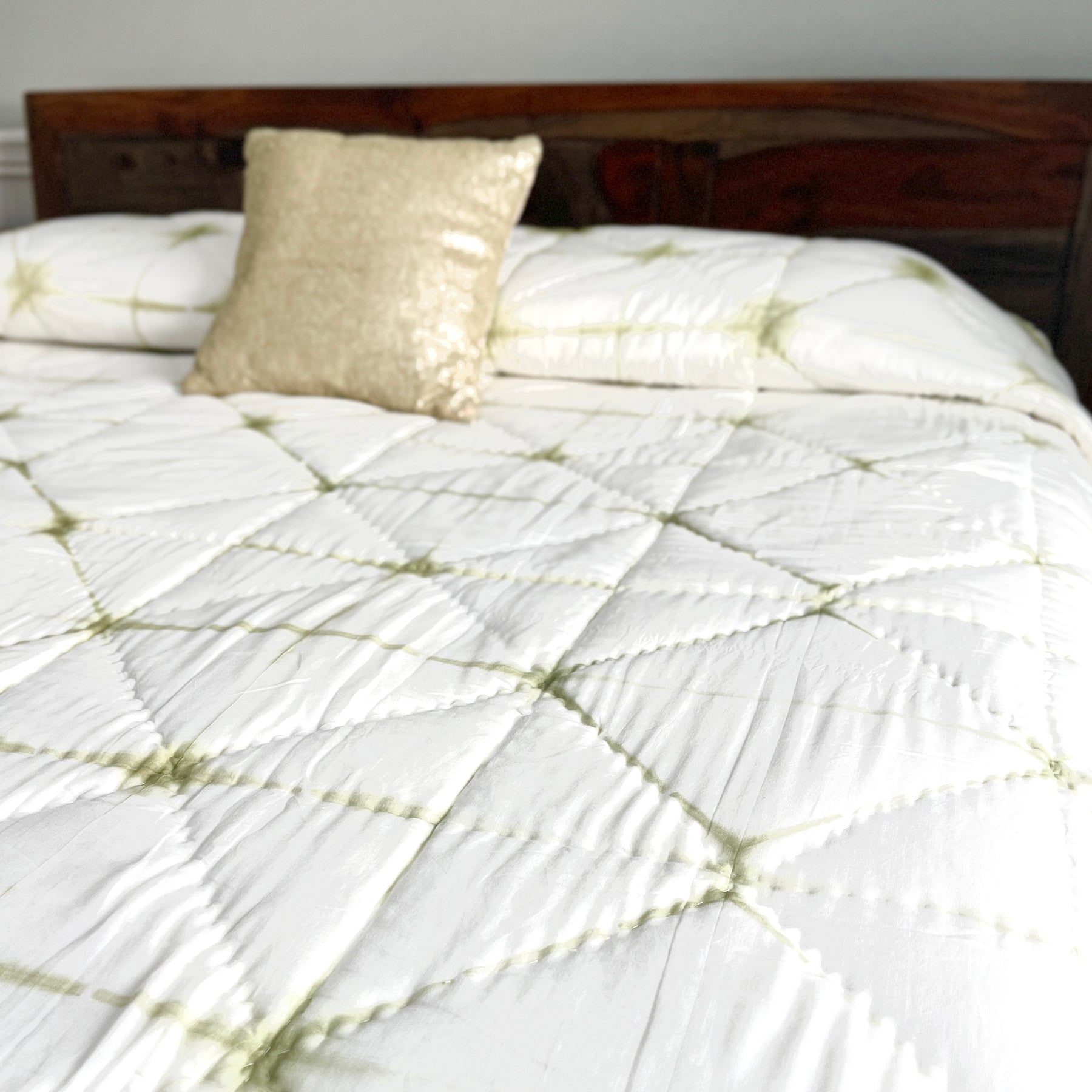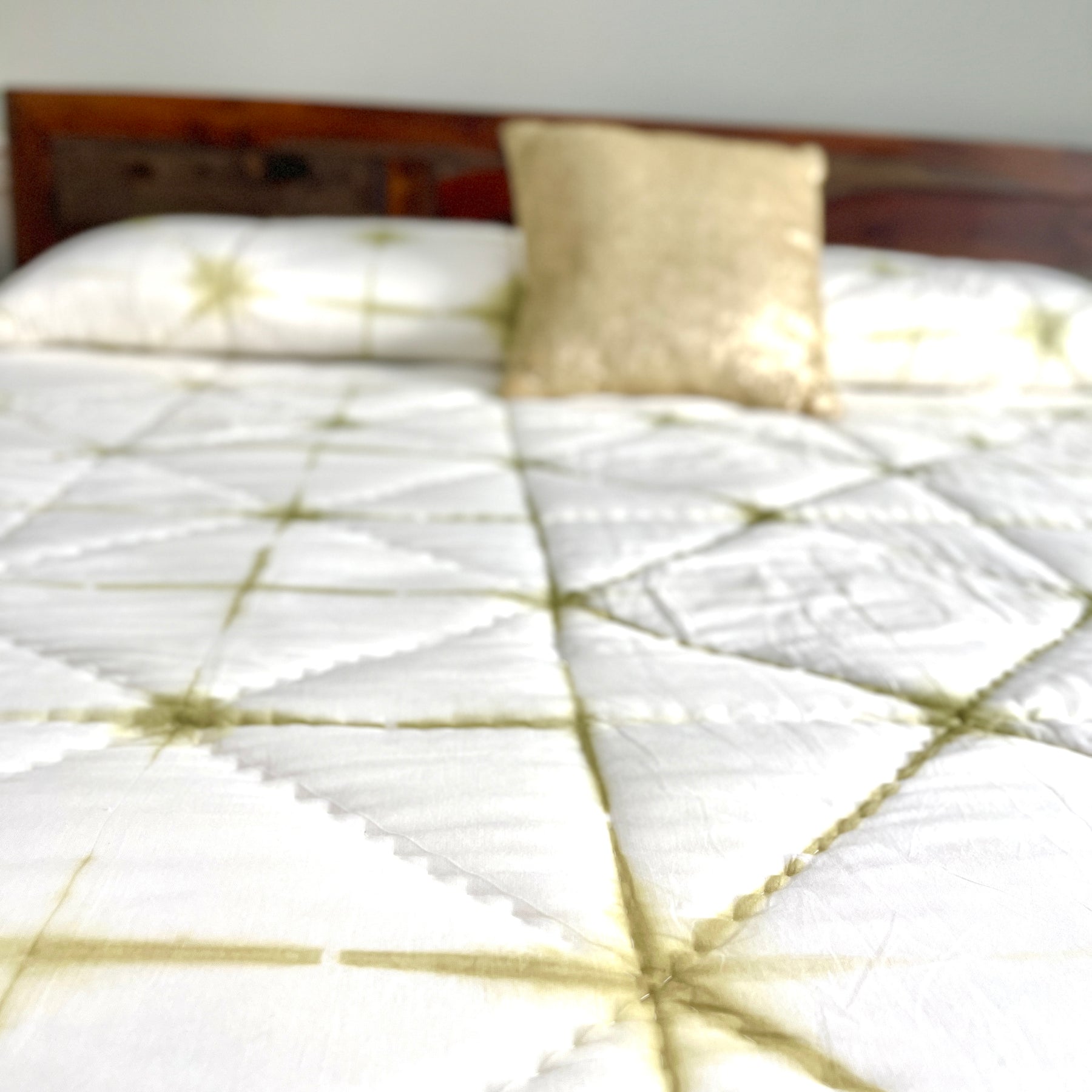 The dyed cotton is then stitched into multiple layers, creating a quilt that is lightweight yet incredibly sturdy. It drapes elegantly, breathes beautifully, and is built to last for decades.